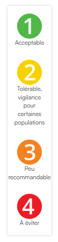 L’association de consommateur UFC Que Choisir a établi un liste de plus de 300 additifs courants réputés pour leurs effets potentiellement nocifs sur la base d’études scientifiques de l’INSERM et les a classé en 4 catégories.